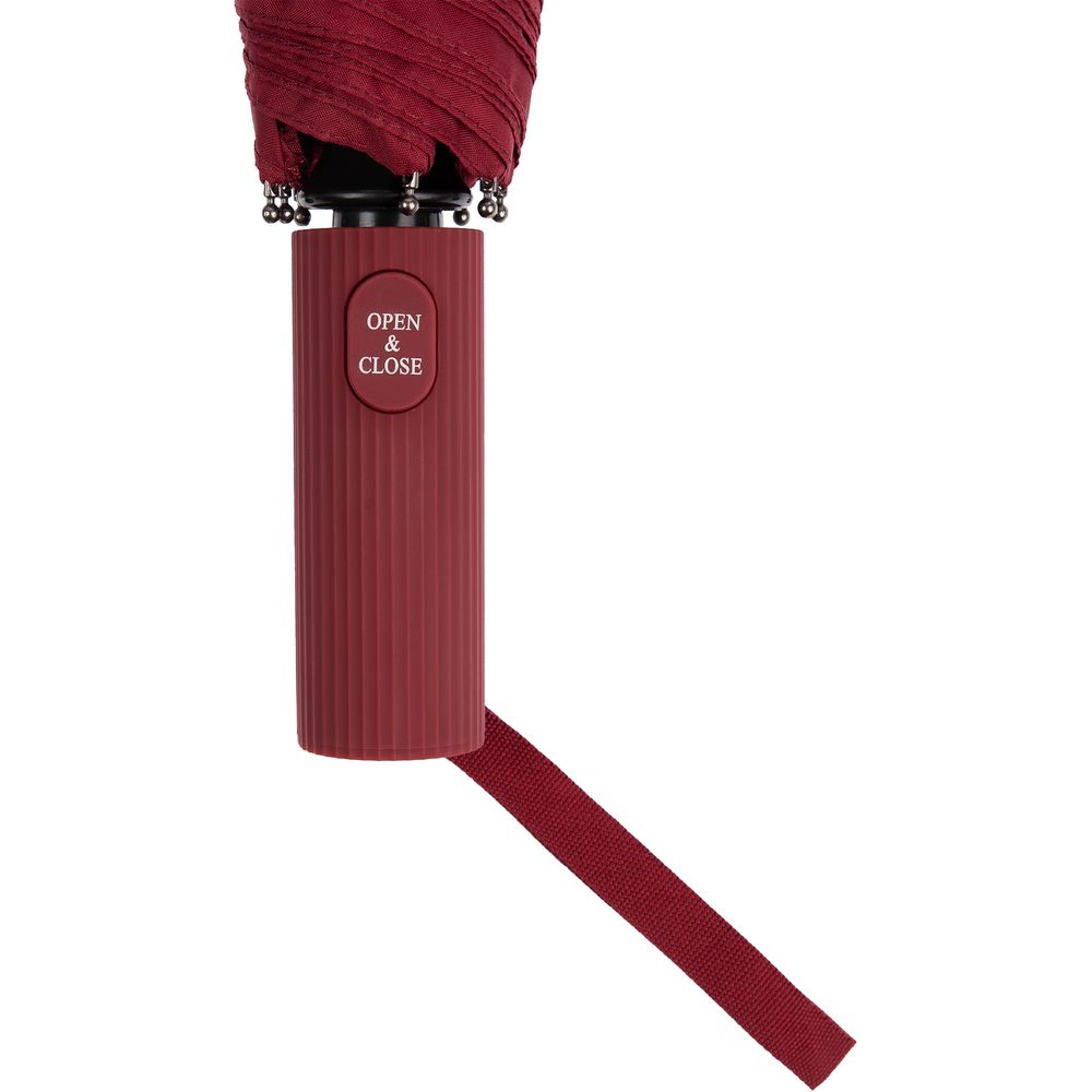 • Прямая ребристая ручка из пластика с петлей и кнопкой открытия и закрытия зонта