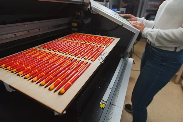 КАК ЭТО РАБОТАЕТ УФ-печать (ультрафиолетовая печать) – цифровая печатная технология с использованием УФ-отверждаемых чернил, которые застывают под воздействием ультрафиолетового излучения, образуя плёнку на запечатываемом материале. При нанесение в несколько слоев на предмете появится рельеф. Попадание в цвет будет максимально точным, а изображение стойким к истиранию и выгоранию. В технопарке ЦМИК для такой печати используется плоскопечатный струйный УФ-принтер, который брендирует предметы толщиной до 10 см. Размер нанесения - до А3 формата. Тираж может быть любым. ЧТО БРЕНДИРУЮТ НА УФ-ПРИНТЕРЕ В некоторых случаях УФ печать заменяет тампопечать. Главное условие: поверхность должна быть плоской или иметь небольшое искривление. С помощью принтера можно нанести полноцветное брендирование на обложку ежедневника, открытку, каталог.
